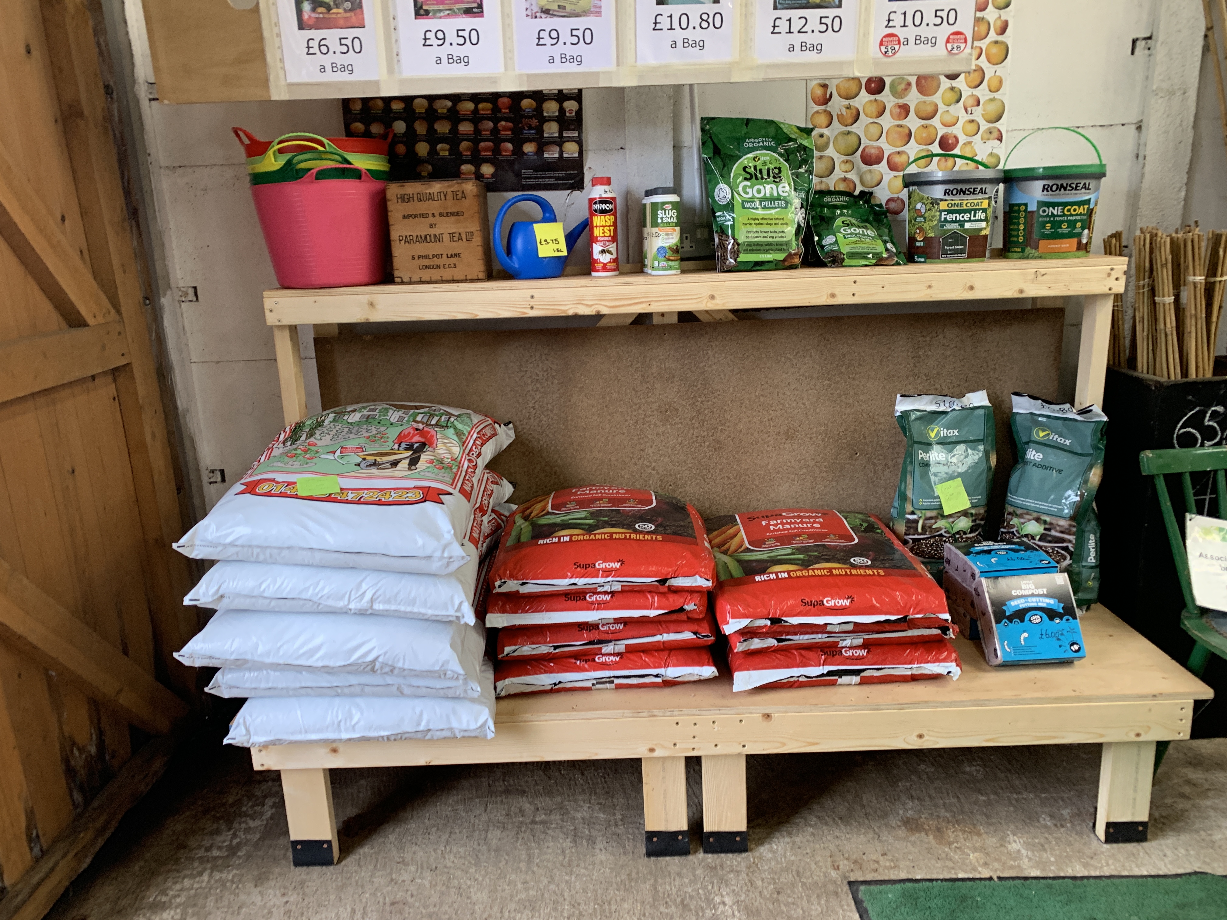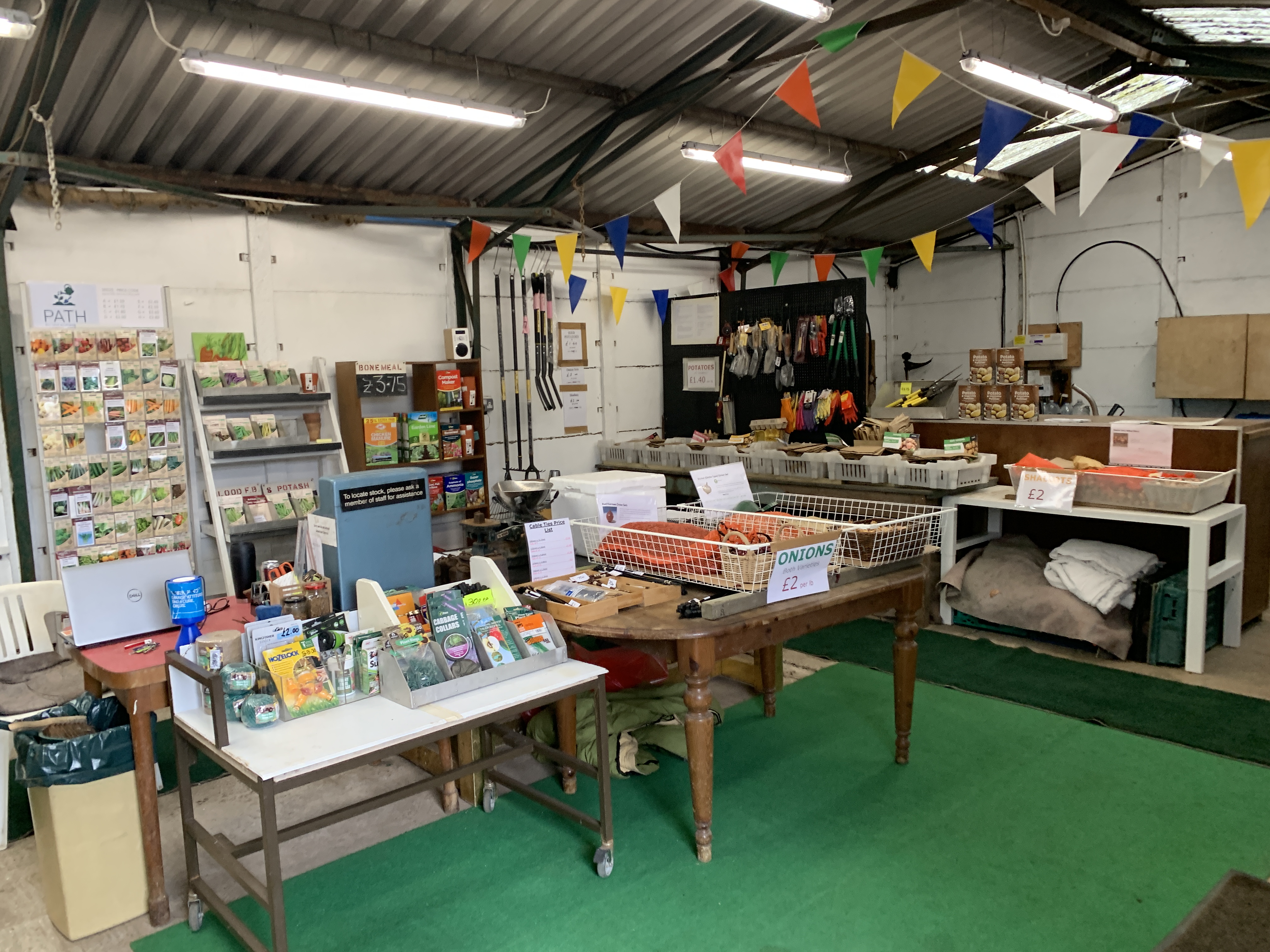 A splendid group of volunteers have worked really hard to revamp the interior of the trading hut. Van loads of accumulated rubbish have been removed. New heavy duty shelf units for compost, manure etc have been built (Philip Sindall) and the whole place has been spring cleaned up to roof level.
